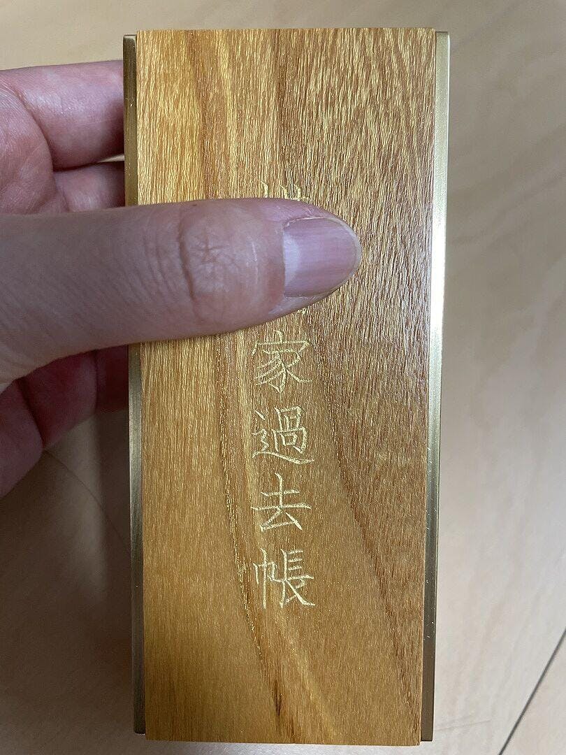 過去帳はご家族の戒名などを後世に残す大切な仏具です。過去帳の木材は欅(ケヤキ)を使用しました。木目が美しく、堅くて摩耗に強いので、日本家屋の建築用材としても古くから使われ、神社仏閣などにも用いられた木材です。またデザインのアクセントとして過去帳の両端にはゴールドの金属を採用し、スタイリッシュなイメージに仕上がっております。特に家具調仏壇・モダン仏壇などにとてもマッチします。職人による国産の高品質な過去帳ですので末永くお使い頂けます。