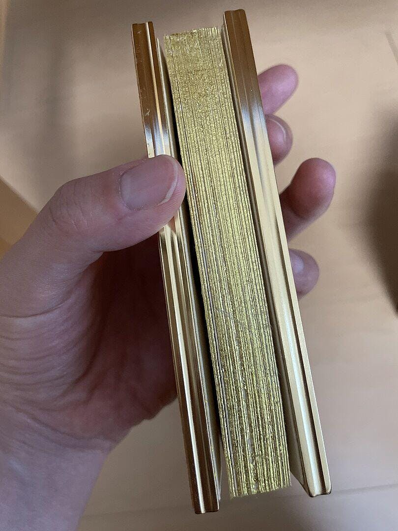 そんなにパラパラめくることはありませんが、触ると側面の金粉がハラハラと落ちてきて服や手に付くのが少し残念です。