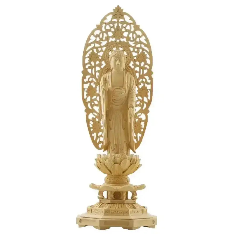 本柘植仏像 八角台座 舟立弥陀 【浄土宗・時宗】:4.5寸 / 木地