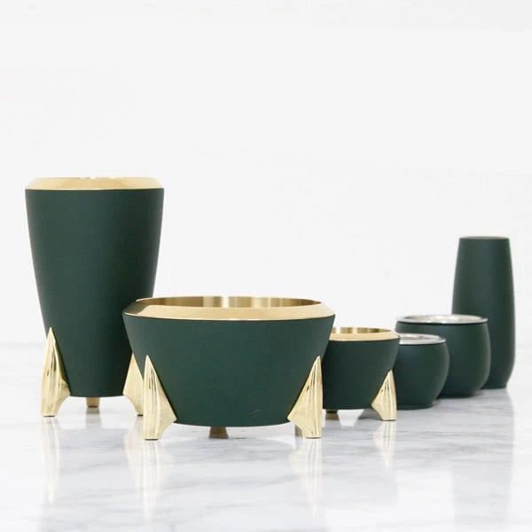 グラフィックデザイナー中嶋和也氏がデザインした仏具セットでマットな質感の緑色の中に上品に光る金色がアクセントとなっています。モダン仏壇や唐木仏壇など、色や形にとらわれず、どのようなお仏壇にも合わせてご使用いただけます。