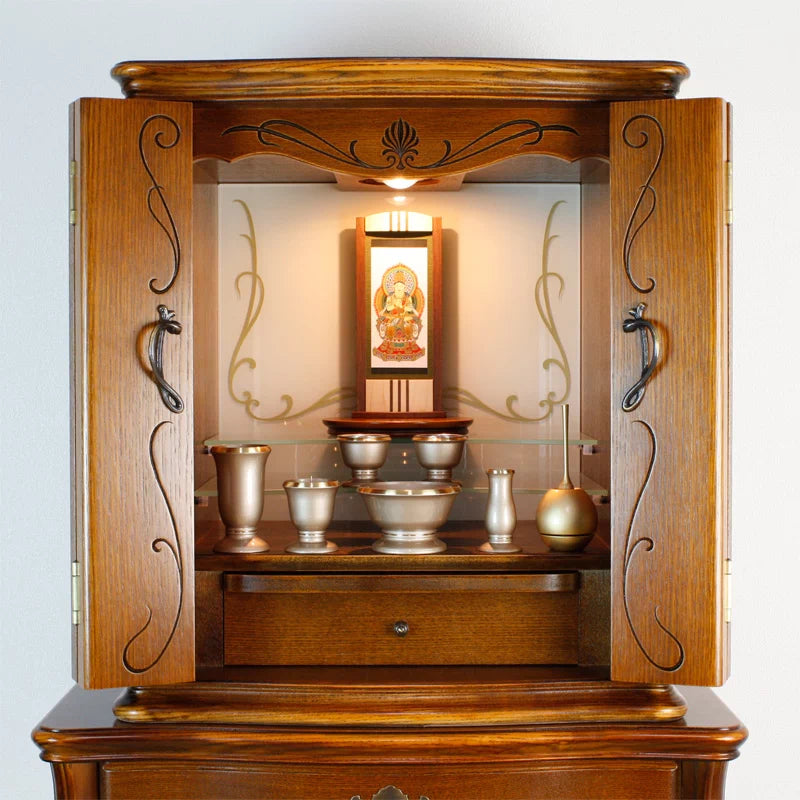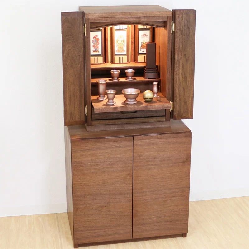 材質には高級木材のウォールナットとメープルを使用しています。色のコンビネーションがお洒落でお仏壇の中をモダンな雰囲気に変えます。