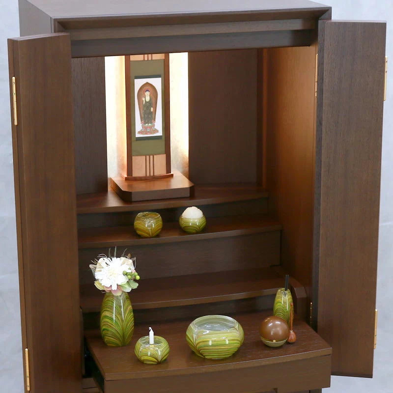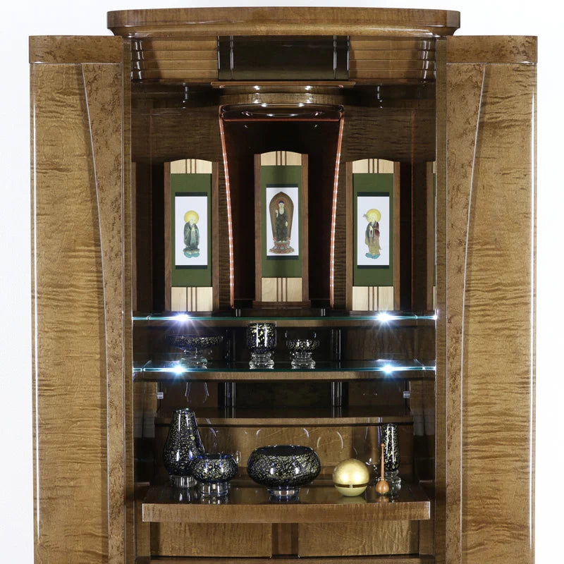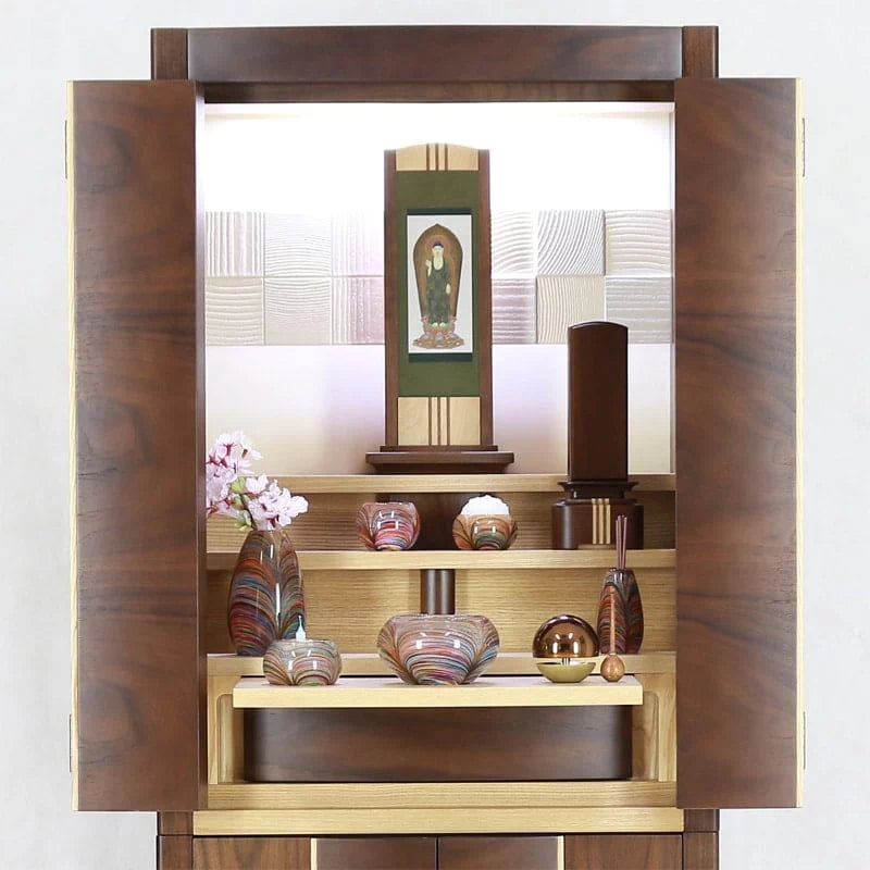 材質には高級木材のウォールナットとメープルを使用しています。色のコンビネーションがお洒落でお仏壇の中をモダンな雰囲気に変えます。