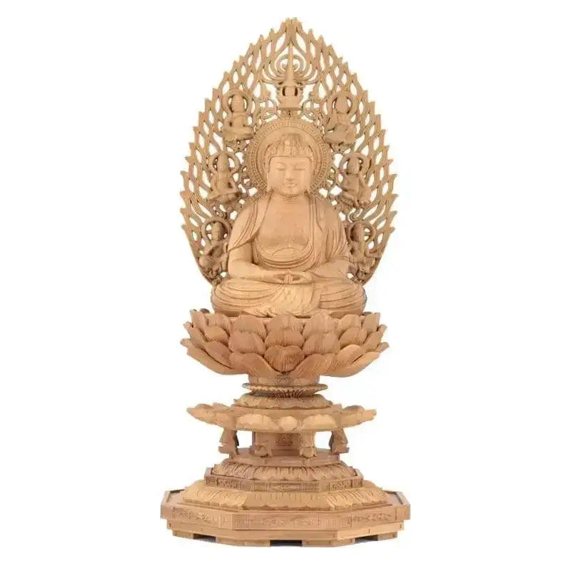 白檀仏像 八角台座 座阿弥陀 【天台宗】:2.0寸 / 木地 / 飛天光背