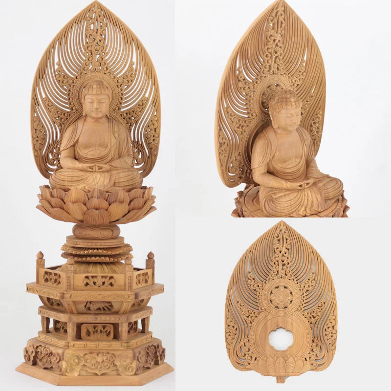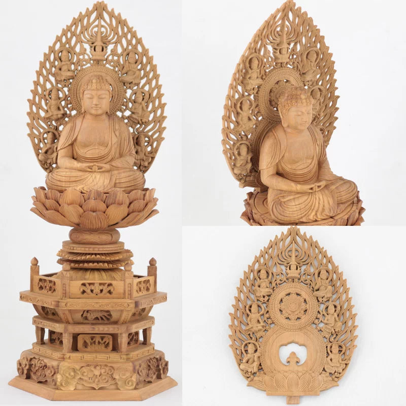 ※仏身・光背・台座はすべて別々になっております。各部品は簡単な差し込み式となっております。差し込みが稀にきつい場合がありますがその際は左右に動かしながら差し込むとしっかりと入れることができます。