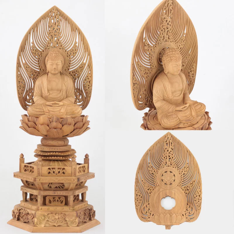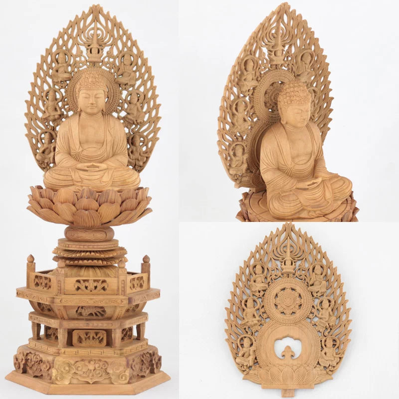 ※仏身・光背・台座はすべて別々になっております。各部品は簡単な差し込み式となっております。差し込みが稀にきつい場合がありますがその際は左右に動かしながら差し込むとしっかりと入れることができます。