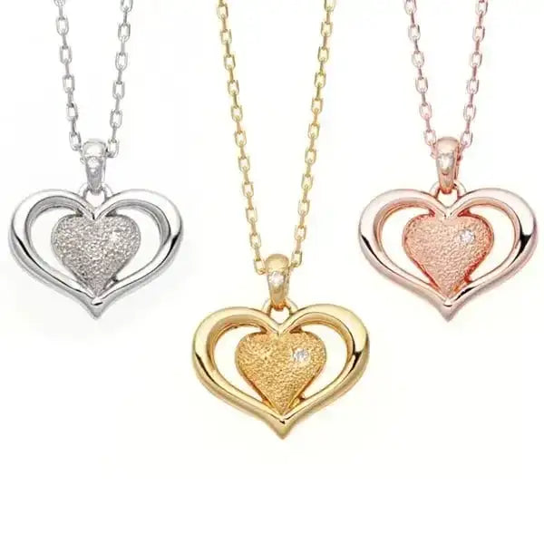 ダイヤを2石使用したハート型遺骨ペンダント。服の上から身につけられる「ロングチェーン」