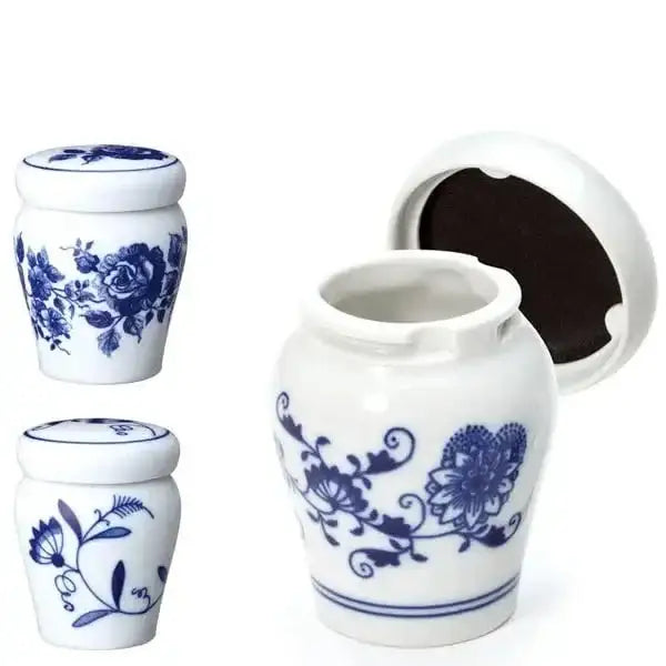 ブルーオニオンの藍色と白磁の絶妙な調和のミニ骨壷。