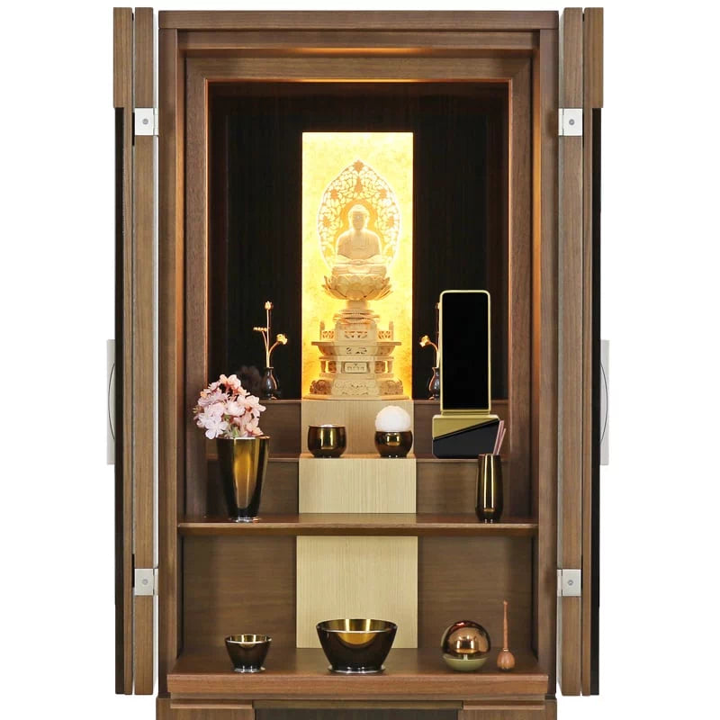 和室の一部を改造して仏壇を新設しましたので、檀朴のご本尊と一緒にブリンセピアを購入しましたが、シンプルなデザイン、仏壇に合った色合い、重量感もあり、最高の佛具セットで申し分なく満足しており、開眼法要も無事に済ますことができ、ありがとうございました。