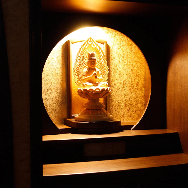• 他のお仏壇にはない満月のようなデザインはご本尊を美しく一層引き立てます。
