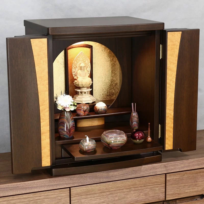 歴史ある徳島の仏壇職人による国産仏壇。満月のようなデザインは和室にもぴったり。