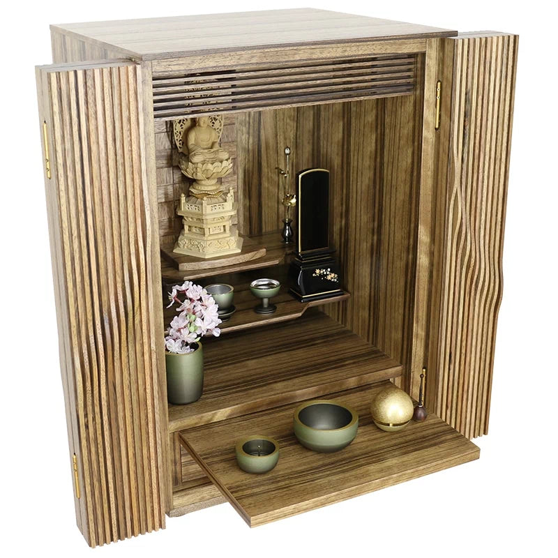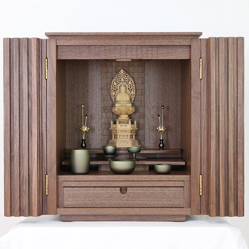 シックな色使いと重厚感のある佇まいが特徴の『光輪』は本物志向のお客様に人気の定番商品です。お仏壇ともコーディネイトし易く永くご愛用頂きたいお道具です。お気に召して頂け幸いです。有難うございました。