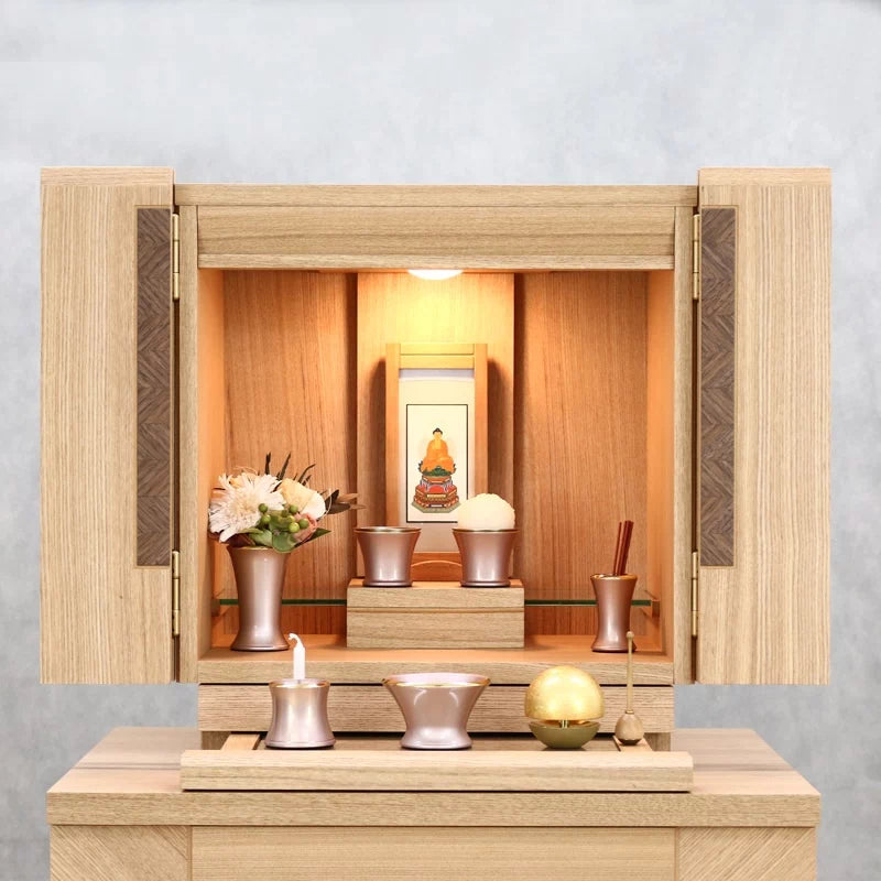 仏具によって荘厳(しょうごん)して初めてお仏壇としての意味を持ちます。仏具はご本尊を供養するのと共に、ご先祖様や亡き人を供養するためのものです。