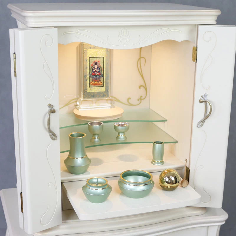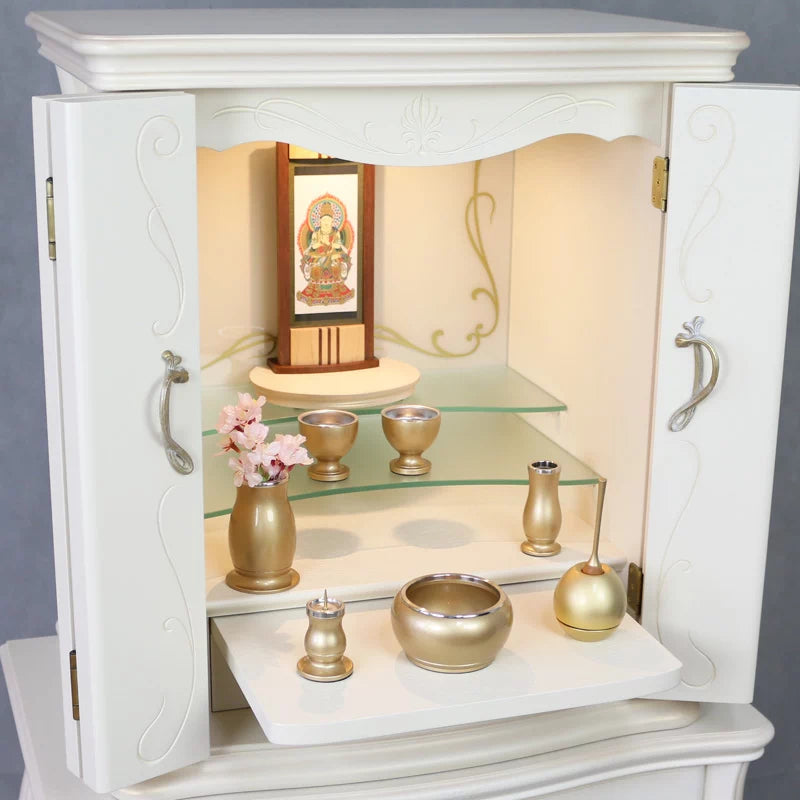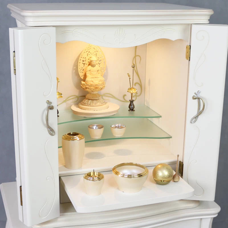 女性に人気のヨーロッパの古典的デザインをモチーフにアンティーク家具職人の技とお仏壇職人の匠の技を融合させた新しい祈り空間。