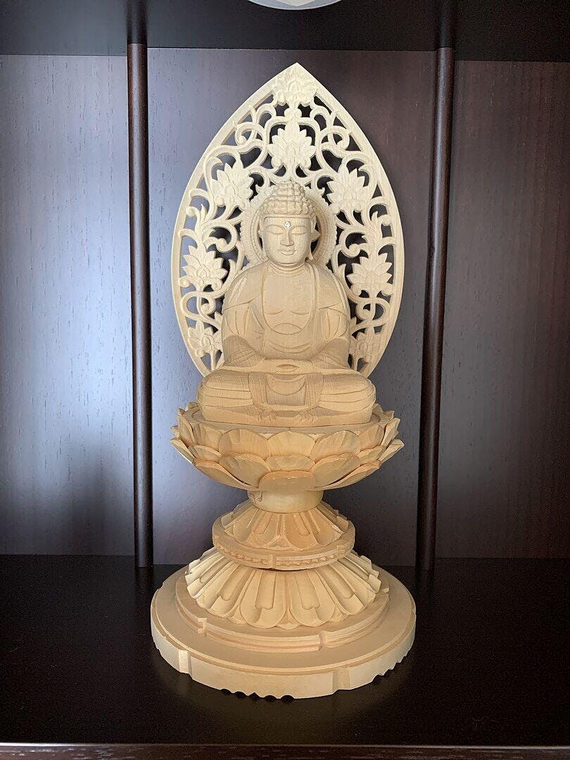 桧木仏像 丸台座 座釈迦 【曹洞宗・臨済宗・禅宗】:3.0寸 / 木地