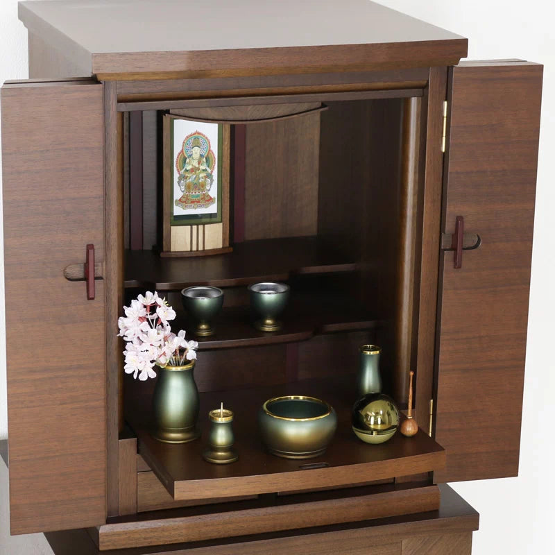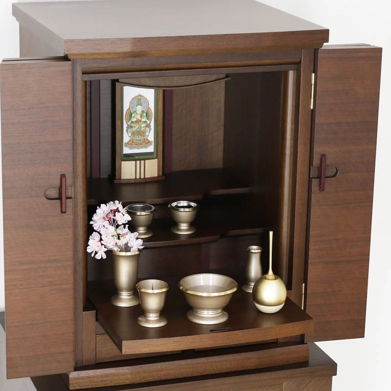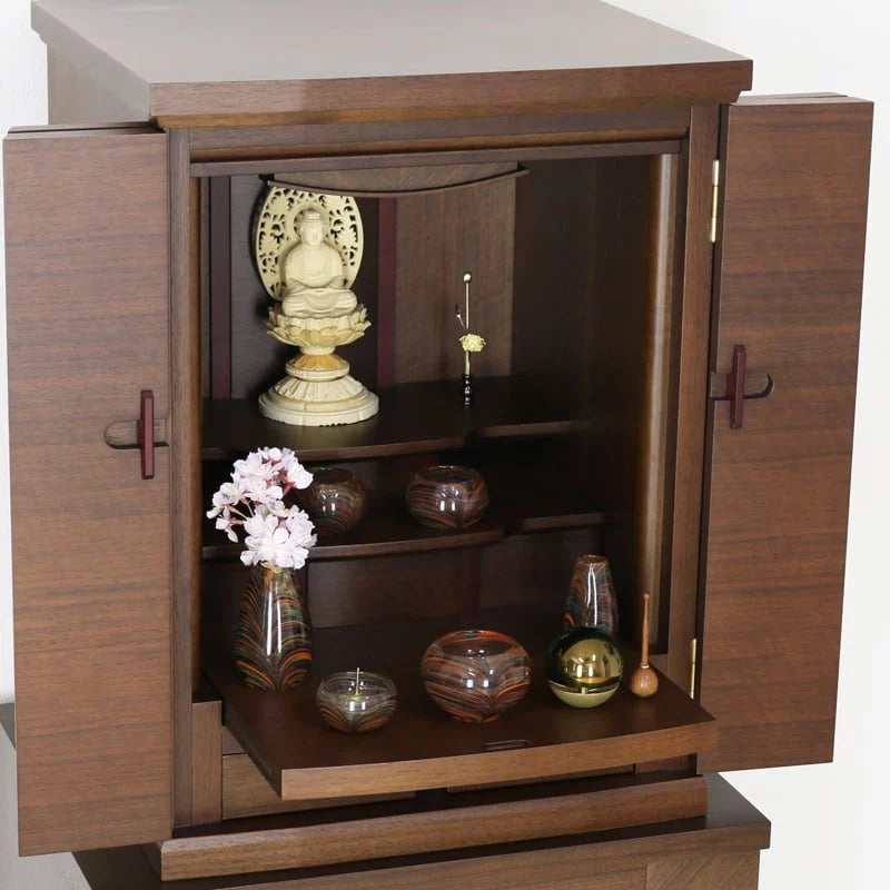 ウォールナットの仏壇を探していたのでカタログを取り寄せ国産で木の温もりを感じられるダミエが気に入り店舗まで行きました 実物は無かったのですが下の台と合わせて仏具も良いものが見つかり毎日手を合わせるのが楽しみです