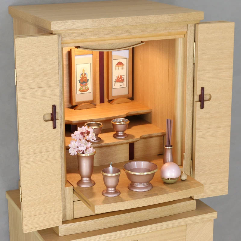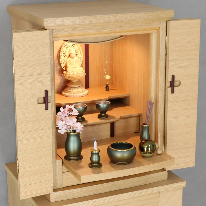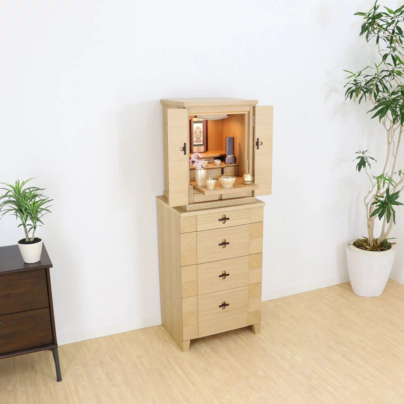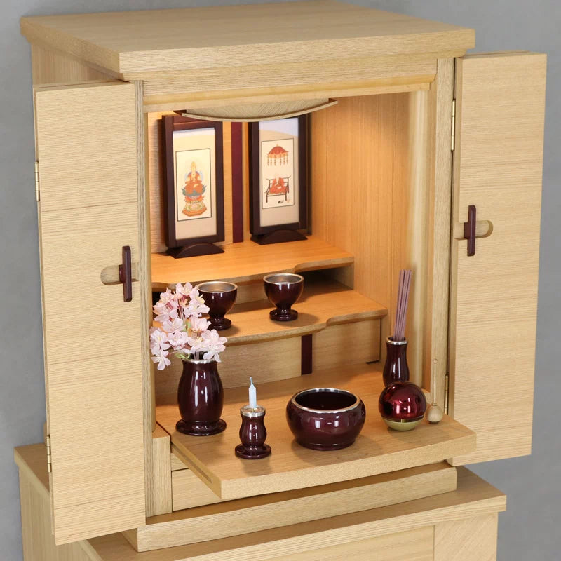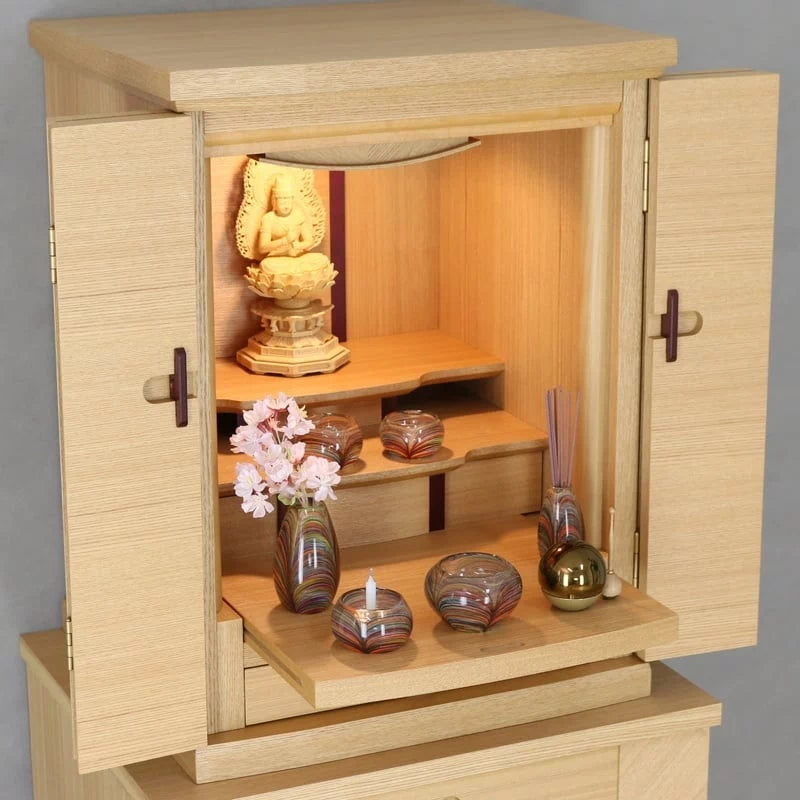 木の暖かさを感じるホワイトオーク材のナチュラルな木目が洋室・和室にもあうモダン仏壇。