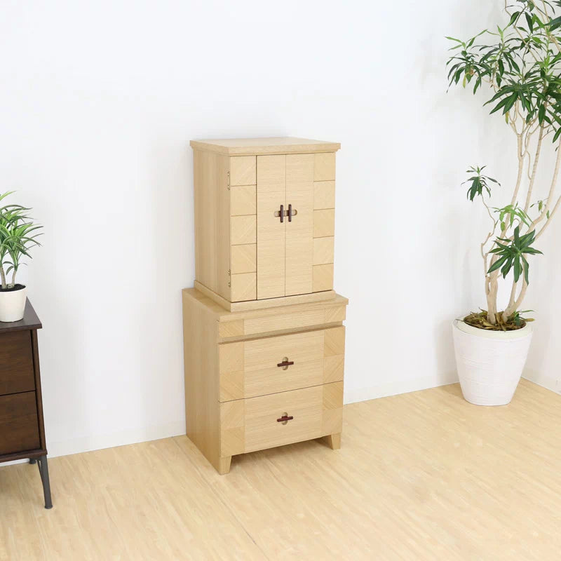 フランス語でDamier(ダミエ)は市松模様という由来からその名が付きました。扉を閉めると木材の貼る向きを変えた矢羽貼りでさりげない市松模様が表現されており、落ち着いた雰囲気でリビングにぴったりマッチし、上質な祈りの空間を演出します。